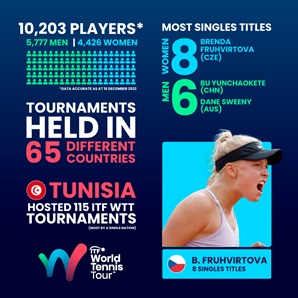The ITF World Tennis Tour delivered a standout season, with over 10,000 players in action across 1059 tournaments as competitive opportunities significantly increased across the Tour in 2022.