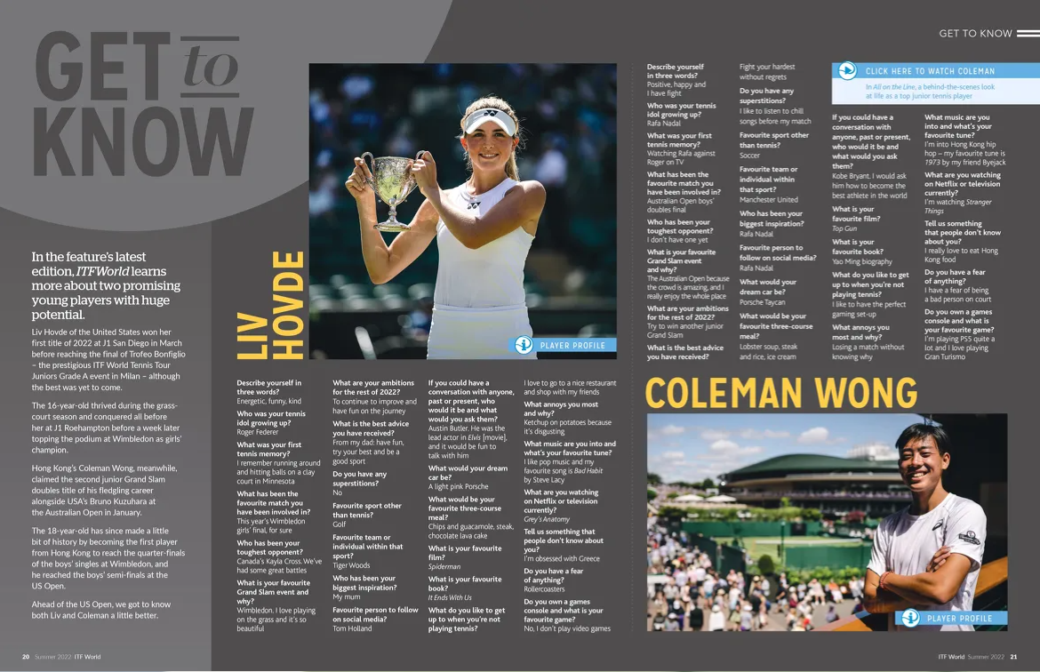 The Get to Know with Coleman Wong first appeared in the summer 2022 edition of ITFWorld, the ITF's flagship magazine, which can be read by clicking here or the page graphic below.