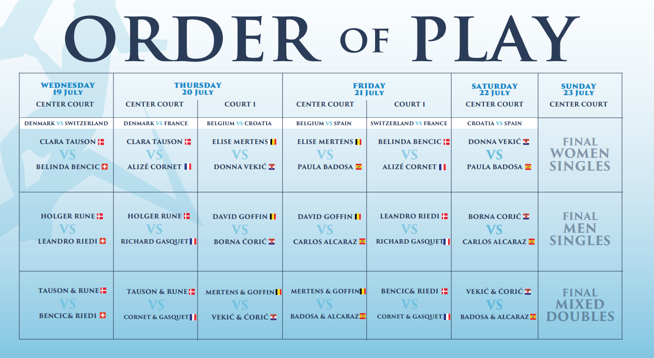The ITF and event partner Tennium have announced the schedule for the 2023 Hopman Cup, the ITF’s official mixed team competition, which will take place at Nice Lawn Tennis Club on 19-23 July.