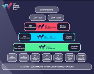 The Men’s and Women’s World Tennis Tours offer over 1000 tournaments worldwide. The Men’s Tour incorporates two prize money levels of tournaments – $15,000 (M15) and $25,000 (M25); while the Women’s Tour has five prize money levels – $15,000 (W15), $25,000 (W25), $60,000 (W60), $80,000 (W80) and $100,000 (W100). We are looking at adding more women's events this year in line with our Advantage All programme to ensure women have even more opportunities to step up.